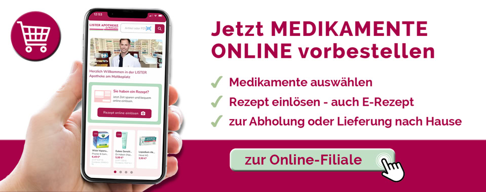 Sie haben ein Rezept oder E-Rezept bekommen oder benötigen ein bestimmtes Produkt? Dann sparen Sie jetzt viel Zeit und bestellen in unserer Online-Filiale Ihre gewünschten Medikamente vor. Einfacher geht es nicht. Probieren Sie es aus!