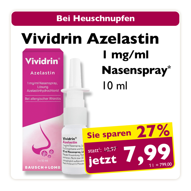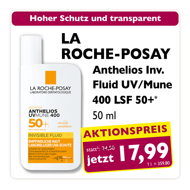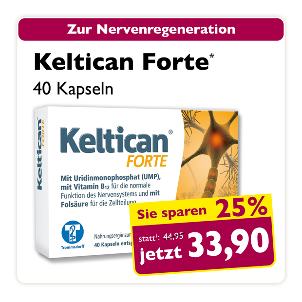 * Zu Risiken oder Nebenwirkungen lesen Sie die Packungsbeilage oder fragen Sie Ihren Arzt oder Apotheker. Abgabe in haushaltsüblichen Mengen. Solange der Vorrat reicht. Änderungen, Irrtümer und Druckfehler vorbehalten – Stand Druckschluss. Alle Preise in Euro inkl. MwSt. Rabatte nicht kombinierbar. Gültig vom 01. bis 31.03.2026. 1 In Apotheken bundesweit einheitlicher Verkaufspreis nach der Großen Deutschen Spezialitätentaxe (sog. Lauer-Taxe), der bei Abgabe zu Lasten der Gesetzlichen Krankenversicherung (GKV) berechnet wird. Es handelt sich nicht um die unverbindliche Preisempfehlung des Herstellers. 2 Unverbindliche Preisempfehlung des Herstellers.