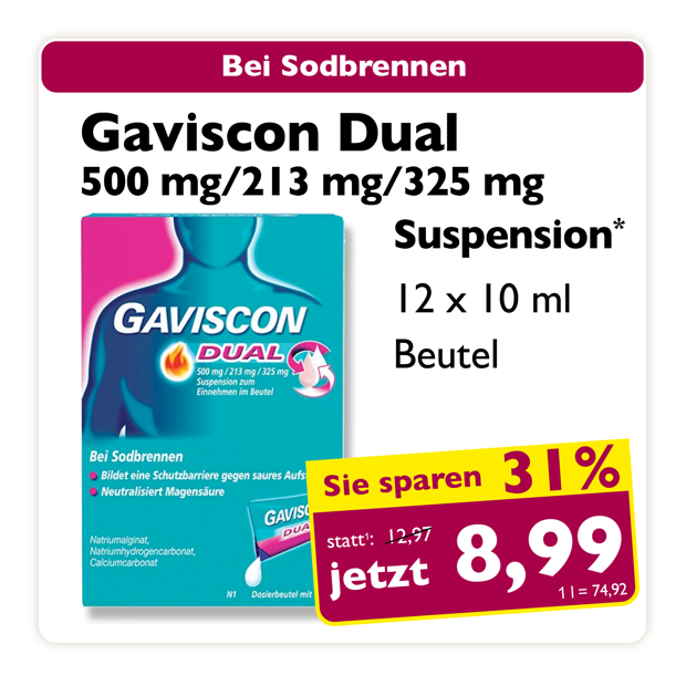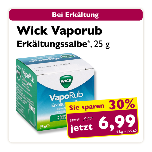 * Zu Risiken oder Nebenwirkungen lesen Sie die Packungsbeilage oder fragen Sie Ihren Arzt oder Apotheker. Abgabe in haushaltsüblichen Mengen. Solange der Vorrat reicht. Änderungen, Irrtümer und Druckfehler vorbehalten – Stand Druckschluss. Alle Preise in Euro inkl. MwSt. Rabatte nicht kombinierbar. Gültig vom 01. bis 31.12.2025. 1 In Apotheken bundesweit einheitlicher Verkaufspreis nach der Großen Deutschen Spezialitätentaxe (sog. Lauer-Taxe), der bei Abgabe zu Lasten der Gesetzlichen Krankenversicherung (GKV) berechnet wird. Es handelt sich nicht um die unverbindliche Preisempfehlung des Herstellers. 2 Unverbindliche Preisempfehlung des Herstellers.
