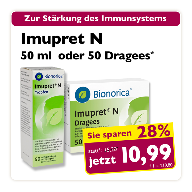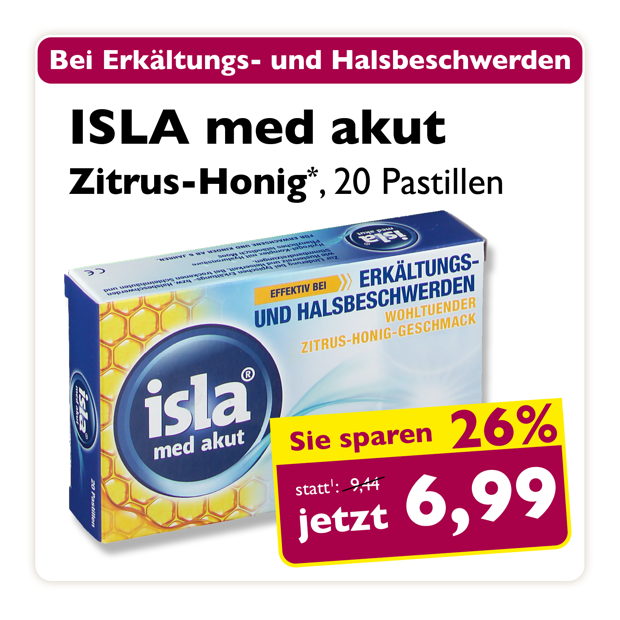 * Zu Risiken oder Nebenwirkungen lesen Sie die Packungsbeilage oder fragen Sie Ihren Arzt oder Apotheker. Abgabe in haushaltsüblichen Mengen. Solange der Vorrat reicht. Änderungen, Irrtümer und Druckfehler vorbehalten – Stand Druckschluss. Alle Preise in Euro inkl. MwSt. Rabatte nicht kombinierbar. Gültig vom 01. bis 30.11.2025. 1 In Apotheken bundesweit einheitlicher Verkaufspreis nach der Großen Deutschen Spezialitätentaxe (sog. Lauer-Taxe), der bei Abgabe zu Lasten der Gesetzlichen Krankenversicherung (GKV) berechnet wird. Es handelt sich nicht um die unverbindliche Preisempfehlung des Herstellers. 2 Unverbindliche Preisempfehlung des Herstellers.