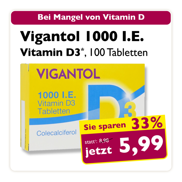 * Zu Risiken oder Nebenwirkungen lesen Sie die Packungsbeilage oder fragen Sie Ihren Arzt oder Apotheker. Abgabe in haushaltsüblichen Mengen. Solange der Vorrat reicht. Änderungen, Irrtümer und Druckfehler vorbehalten – Stand Druckschluss. Alle Preise in Euro inkl. MwSt. Rabatte nicht kombinierbar. Gültig vom 01. bis 31.12.2025. 1 In Apotheken bundesweit einheitlicher Verkaufspreis nach der Großen Deutschen Spezialitätentaxe (sog. Lauer-Taxe), der bei Abgabe zu Lasten der Gesetzlichen Krankenversicherung (GKV) berechnet wird. Es handelt sich nicht um die unverbindliche Preisempfehlung des Herstellers. 2 Unverbindliche Preisempfehlung des Herstellers.