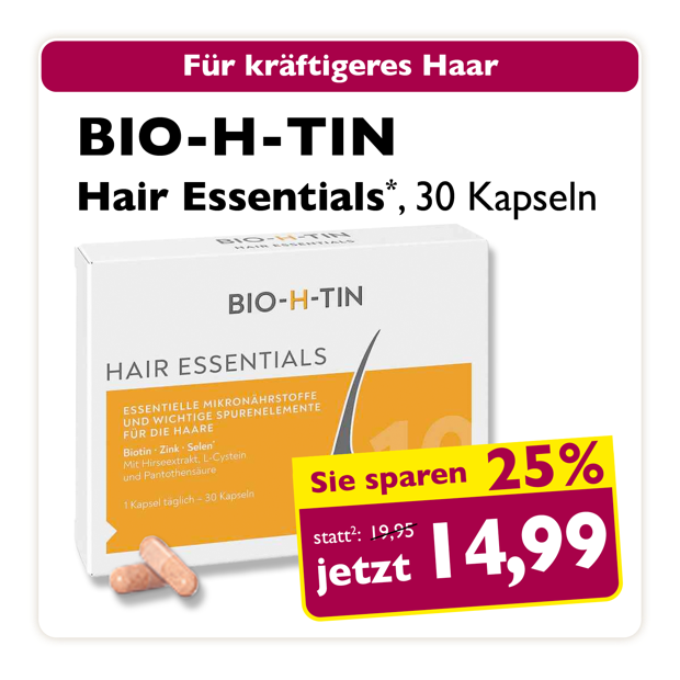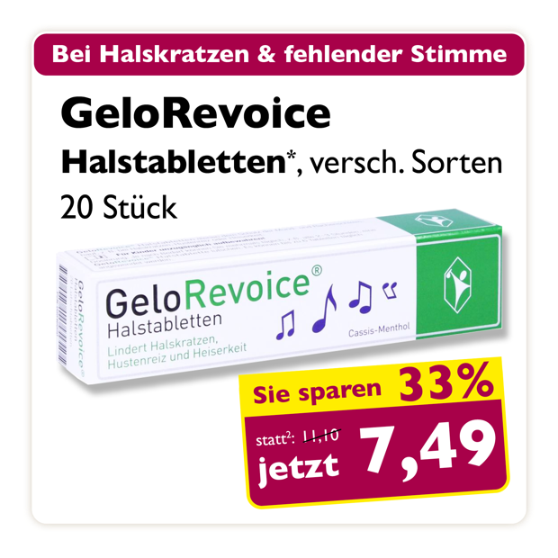 * Zu Risiken oder Nebenwirkungen lesen Sie die Packungsbeilage oder fragen Sie Ihren Arzt oder Apotheker. Abgabe in haushaltsüblichen Mengen. Solange der Vorrat reicht. Änderungen, Irrtümer und Druckfehler vorbehalten – Stand Druckschluss. Alle Preise in Euro inkl. MwSt. Rabatte nicht kombinierbar. Gültig vom 01. bis 31.03.2026. 1 In Apotheken bundesweit einheitlicher Verkaufspreis nach der Großen Deutschen Spezialitätentaxe (sog. Lauer-Taxe), der bei Abgabe zu Lasten der Gesetzlichen Krankenversicherung (GKV) berechnet wird. Es handelt sich nicht um die unverbindliche Preisempfehlung des Herstellers. 2 Unverbindliche Preisempfehlung des Herstellers.